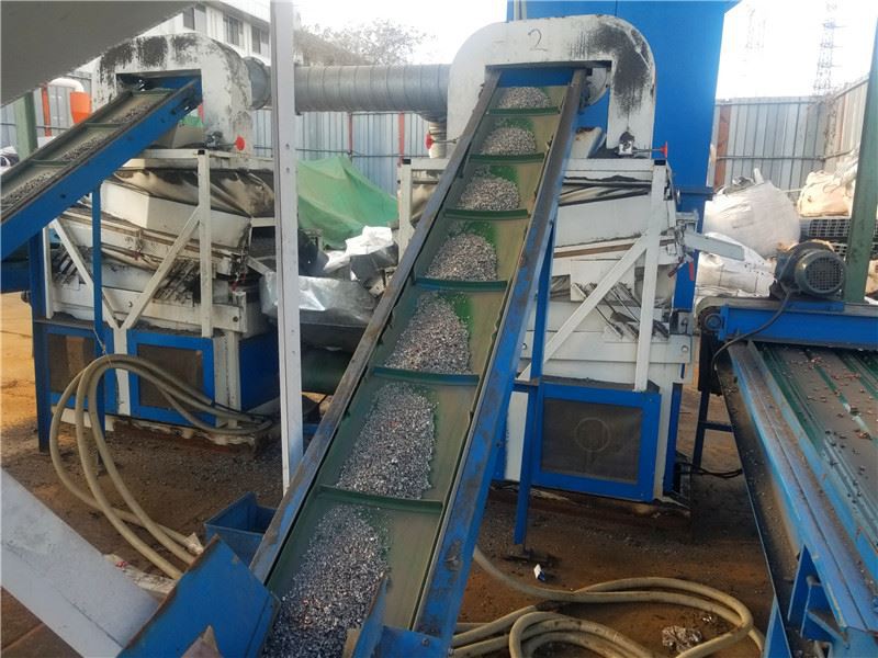 A vibration separator is used to separate copper and aluminum by air and vibration due to the different specific gravity of copper and aluminum.